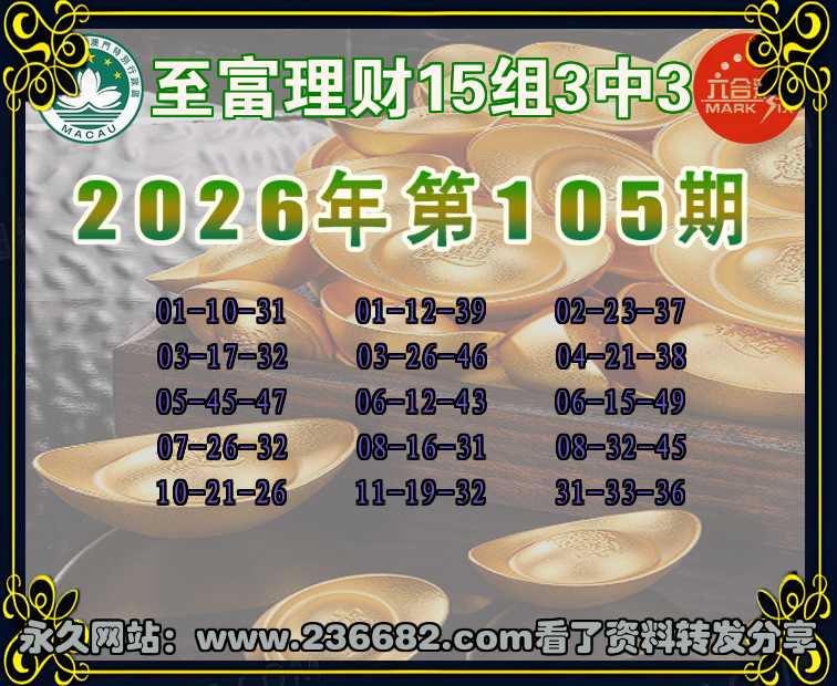105期:《至富理财》 🏇15组3中3🏇